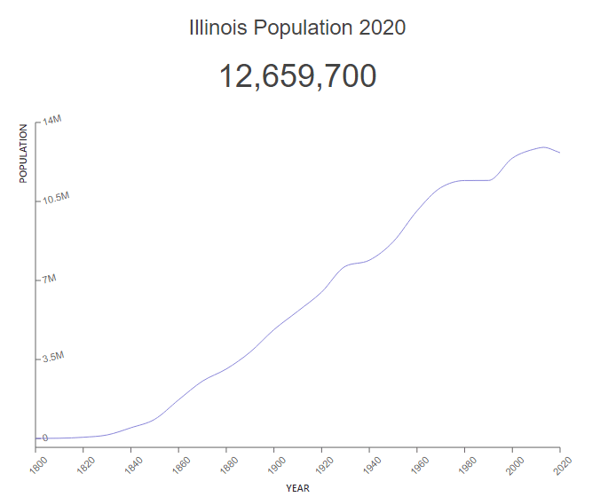 כפי שניתן לראות בגרף, במחצית השניה של המאה ה-20 הצמיחה של אילינוי נבלמה. אוכלוסיית שיקגו למשל, אפילו צומצמה. ב-1960 חיו בה 3.5 מיליון אנשים, וכיום מתגוררים בעיר כ-2.7 מיליון.