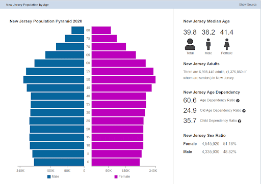 אוכלוסיית ניו ג'רזי, לפי גיל: